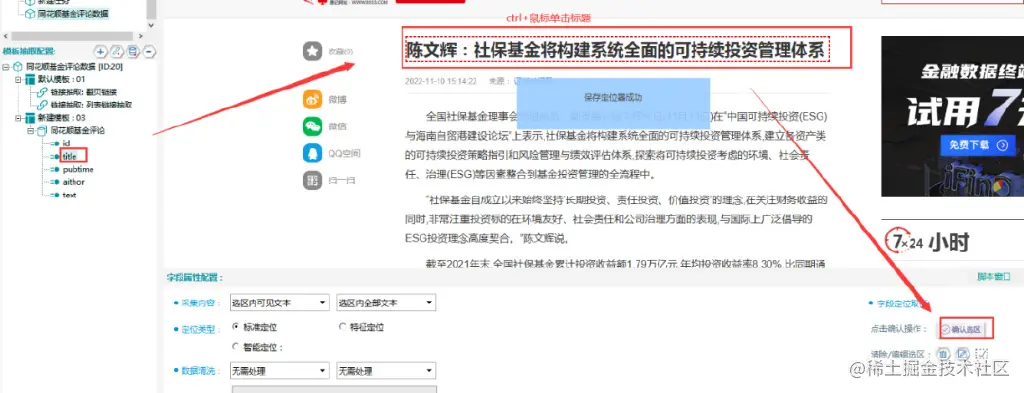 采集预览如下图所示,说明配置成功,可以开始采集。如果有哪个字段或者数据没有出来,再次检查之前配置,正确配置模板。