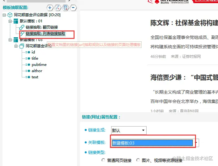 ③关联模板,将翻页链接抽取,关联模板01。