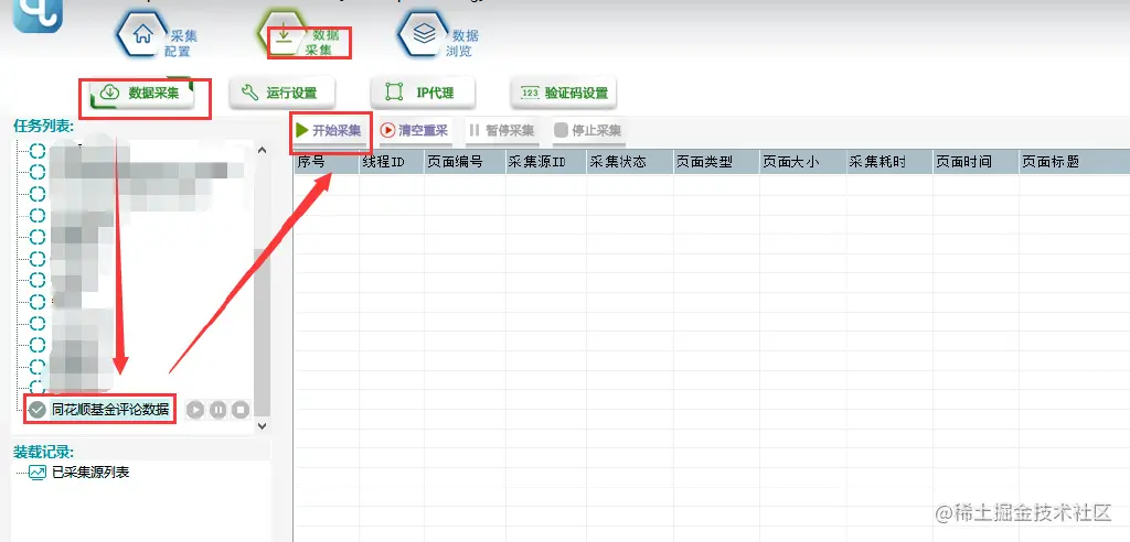 选择【数据采集】,勾选任务名称,点击【开始采集】,则正式开始采集。