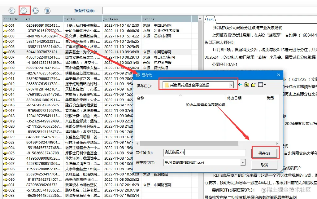 采集结束后,可以在【数据浏览】中,选择数据表查看采集数据,并可以导出数据。
