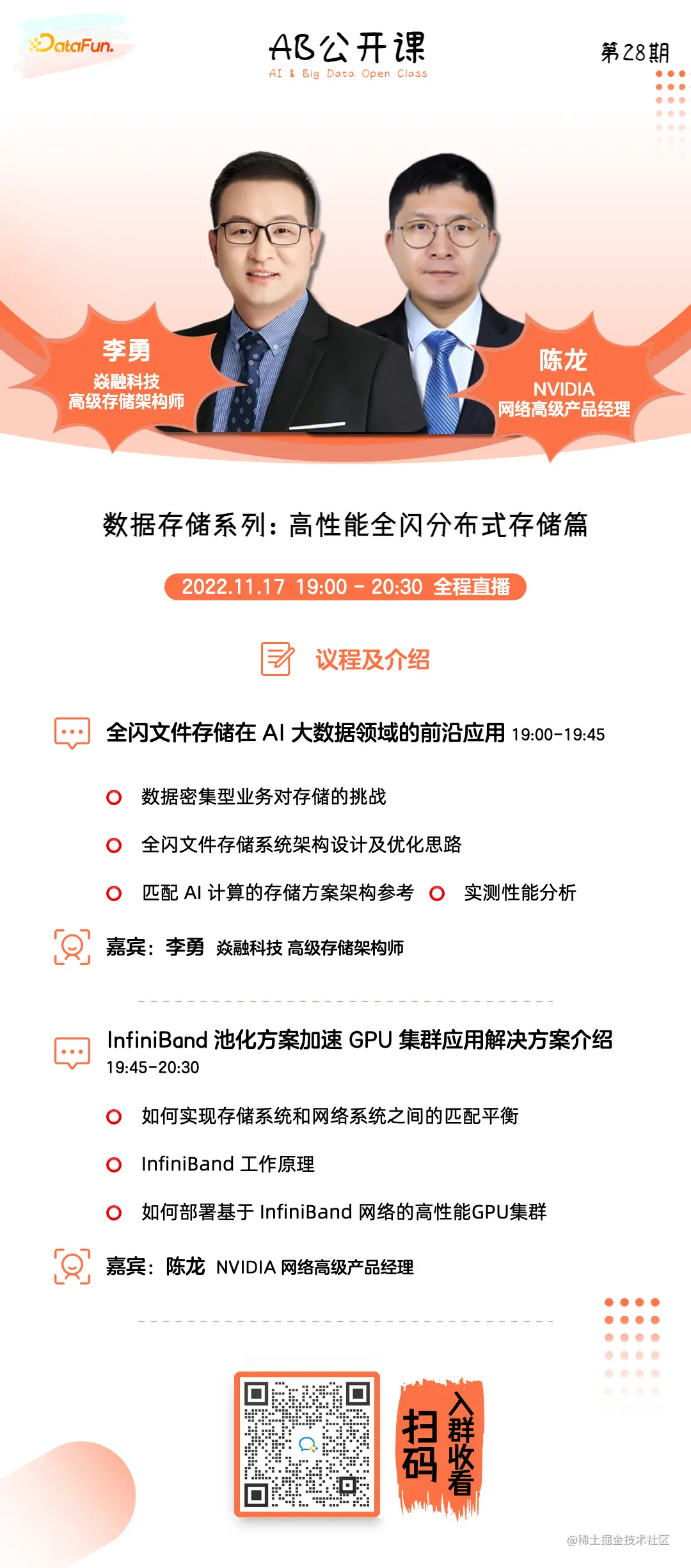 本期,我们将与英伟达网络高级产品经理陈龙一起就 AI 大数据领域如何实现存储容量和性能呈现线性方式增长,帮助 AI 企业加速业务流程进行深度讨论。剖析高性能场景下的存储架构演进过程,通过 InfiniBand 在 GPU 计算服务器和存储设备之间所构建的高带宽、高 IOPS 和低延迟数据传输网络实践,以及 AI/HPC 场景全链路性能调优测试实现对实时、大规模、多样化数据进行高效计算分析的需求。