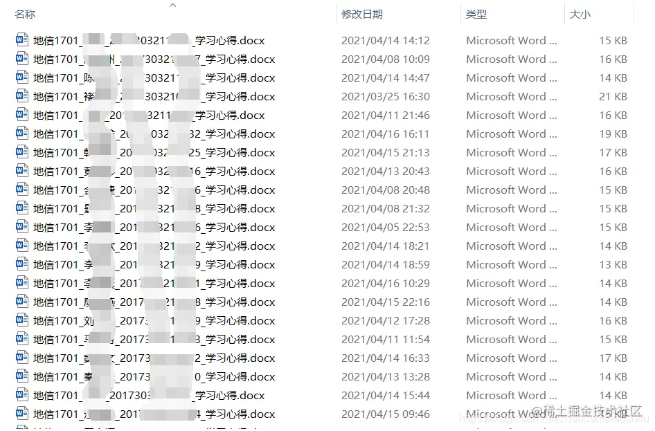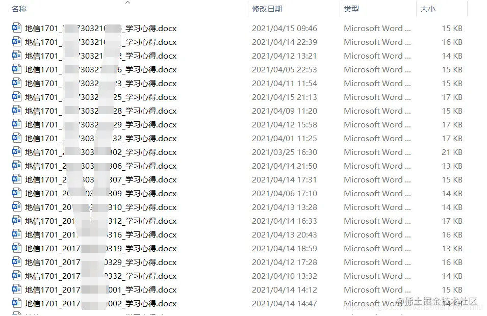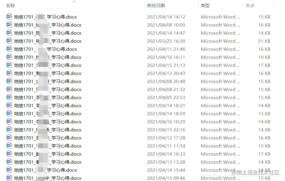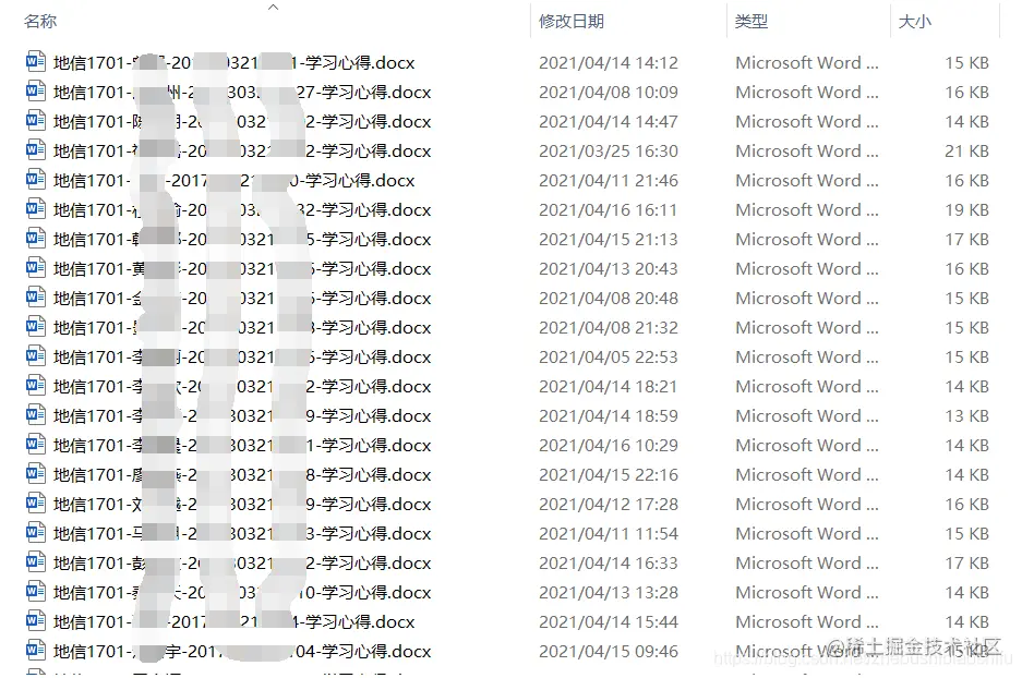 已知现有一个文件夹,其中包括班级所有同学上交的作业文件,每人一份;所有作业文件命名格式统一,都是地信1701_姓名_学习心得