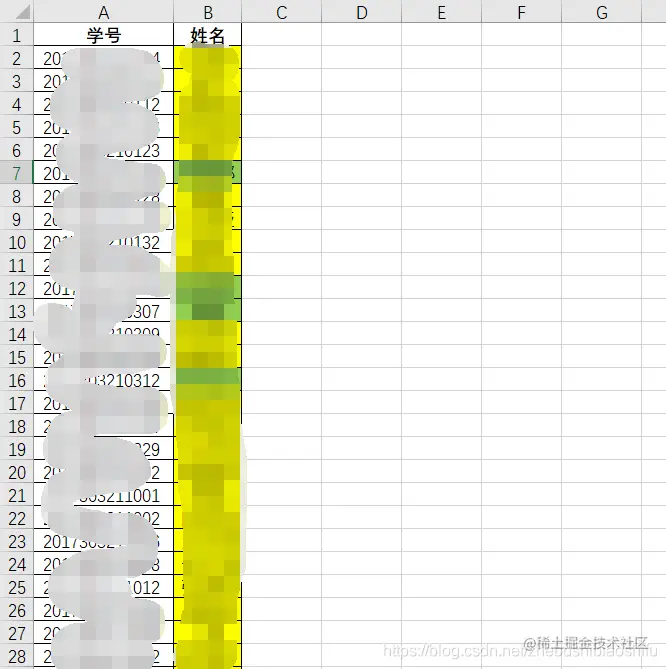 接下来,我们首先需要让程序知道每一位同学的姓名与学号之间的对应关系。因为我们已知姓名与学号之间的关系,因此首先需要类似于下图的表格,其中为姓名与学号的一一对应关系。
