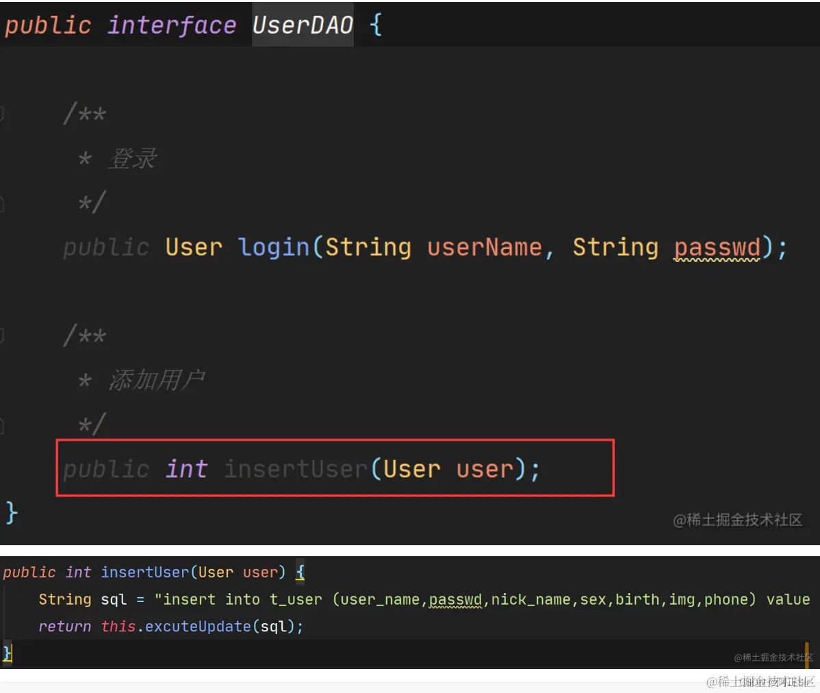 2.1、在UserDAO中新增添加用户的方法