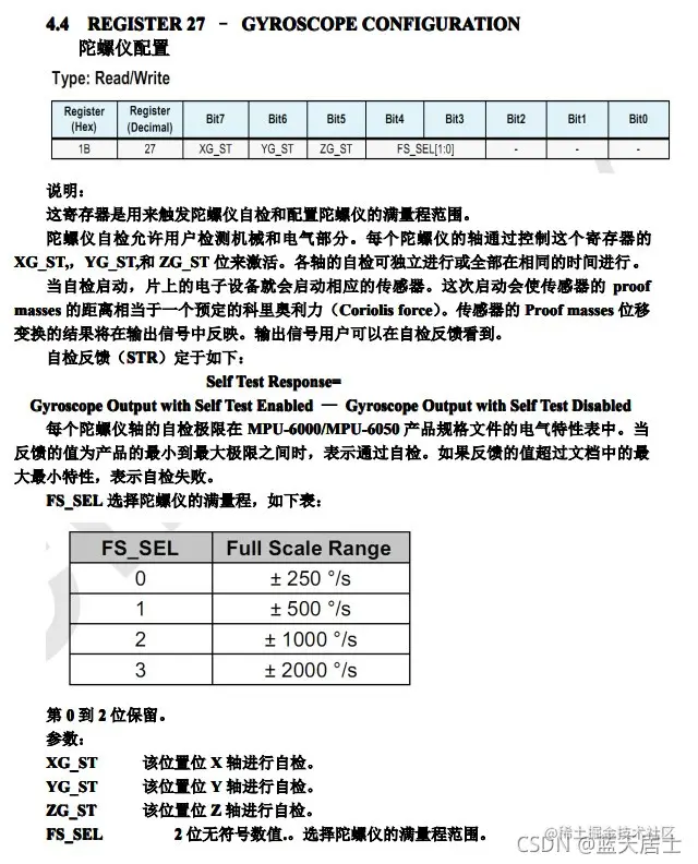 //配置陀螺仪满量程范围,FSR: ±2000°/s,LSB: 16.4 LSB/°/s
