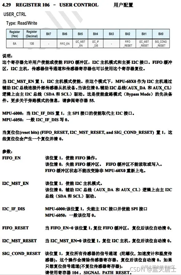 USER_CTRL(0x6A)寄存器如下图所示: