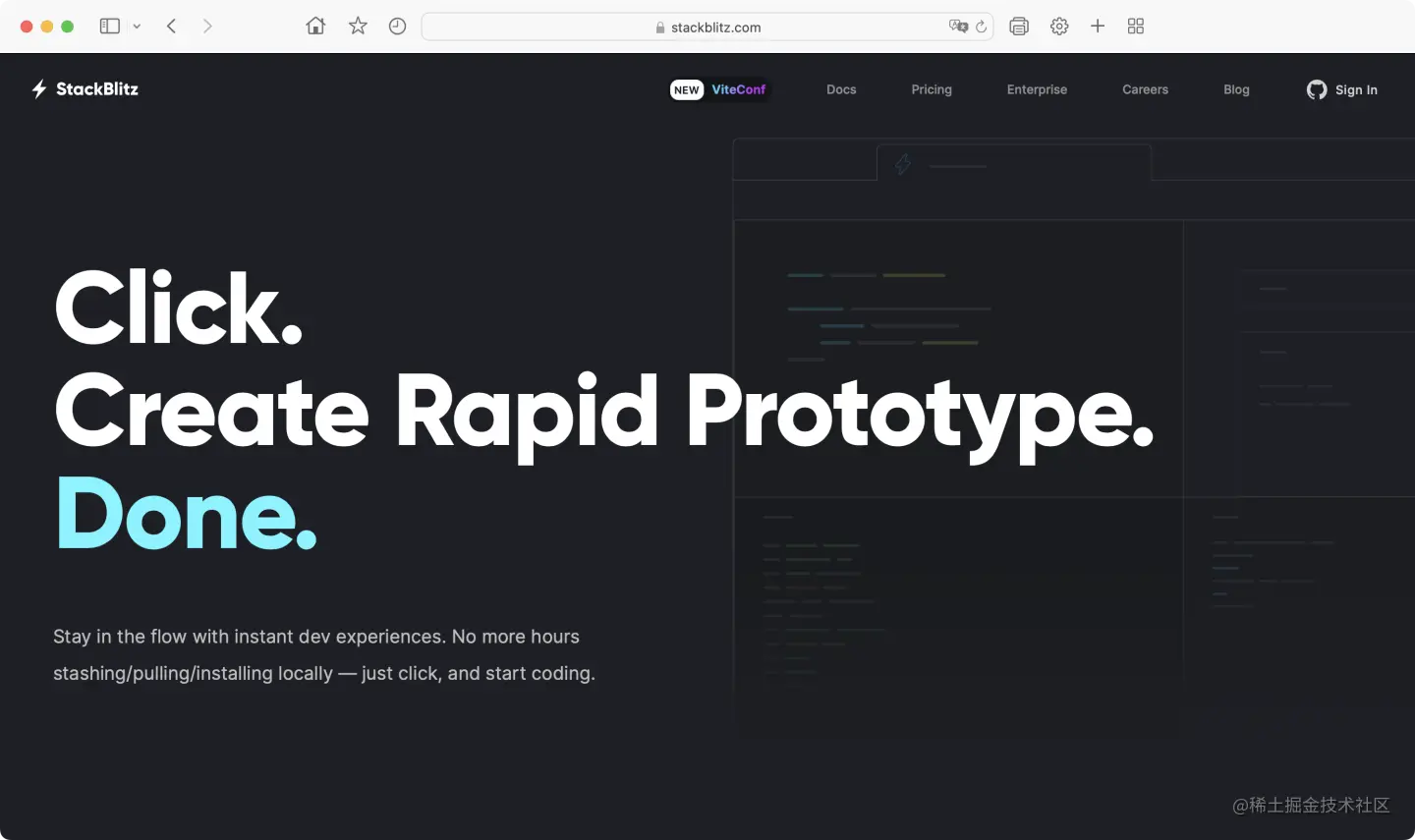 当你看到一个优秀的 github 前端项目,想要运行起来查看效果,以前的是需要这么做:下载项目代码->安装依赖->运行。现在的你只需要:访问网址 stackblitz.com/github/{GH_USERNAME}/{REPO_NAME},就能直接在线运行。