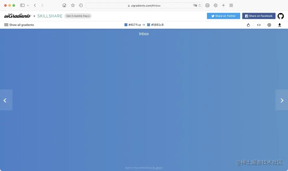 想设置好看的渐变效果却不知该配置什么颜色?试试这个网站。这里提供了多个美观的渐变效果,还贴心的给出了 css 代码,这些渐变组合既能用于背景渐变,也能用于文字渐变,快去试试吧。