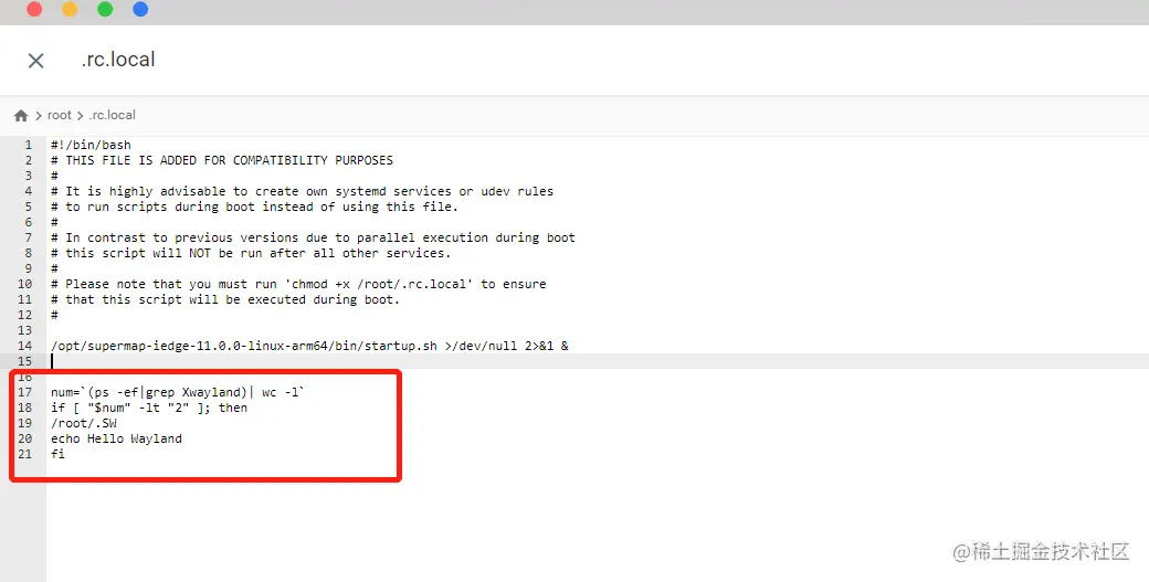 提示,你也可以把你要运行的qt界面程序写.SW之后,这里可以做一些进程的判断,判断wayland是否启动成功,下面代码还是写在下图.rc.local文件中,记得不要之前的代码。