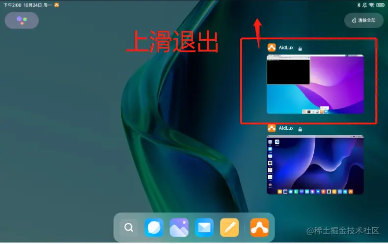 点击类似电源键的图标,选择确定,即可完全退出AidLux