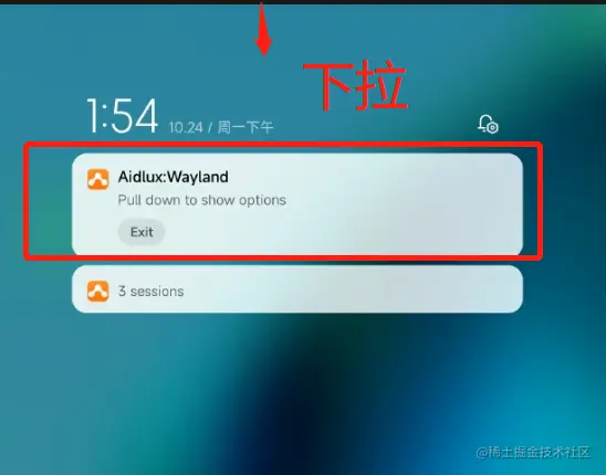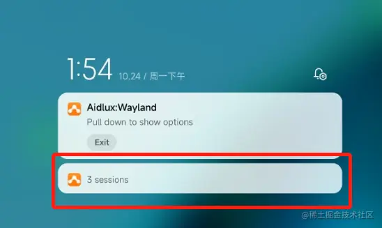 从安卓界面顶部下拉,看见Wayland的session,点击则重新进入Wayland界面