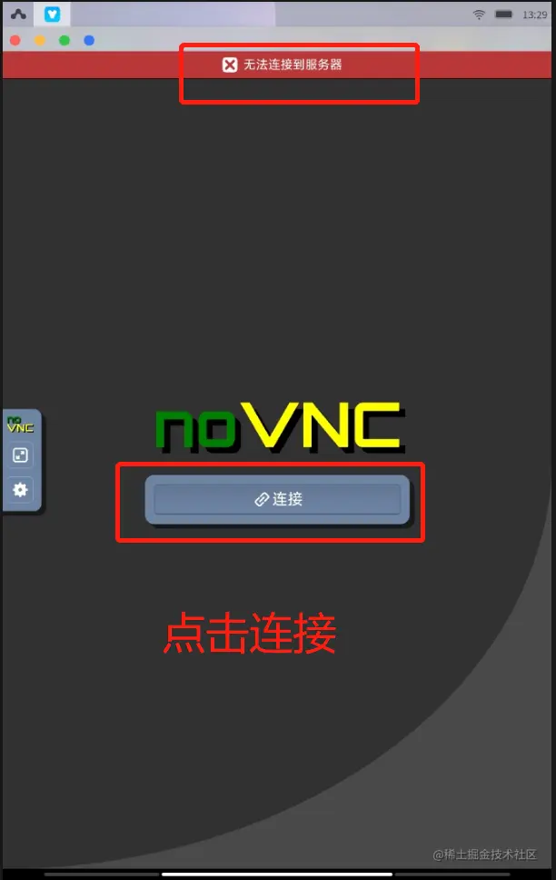 2、平板或手机上面已经运行Wayland或VNC,那么就不能再通过电脑的网页再访问VNC,例如,手机上已经运行VNC,那么在电脑上点xfce,那么就会在电脑上面显示VNC的界面,而手机端会显示未连接。