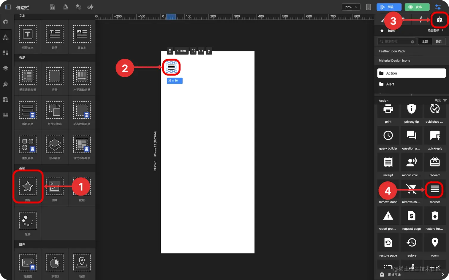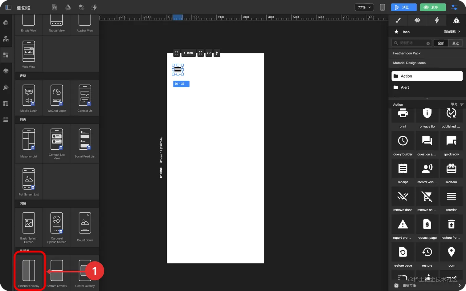 如何制作一个侧边栏 TOWIFY 2022-11-17 354 阅读1分钟 效果展示 前置准备 侧边栏图片素材 具体步骤 添加一个菜单图标 制作侧边栏 创建侧边栏触发器 步骤分解 添加一个菜单图标 拖拽 图标 到根容器 选中 图标 点击 检查面板 中的 数据绑定与设置 选择菜单图标 制作侧边栏 点击 图层 点击加号 点击 侧边栏悬浮层 拖拽 图片组件 到 侧边栏悬浮层 选中图片 点击 检查面板 中的 数据绑定与设置 点击 上传图片 上传准备的素材 创建侧边栏触发器 选中图标 点击 检查面板 的 触发器 创建 触发器