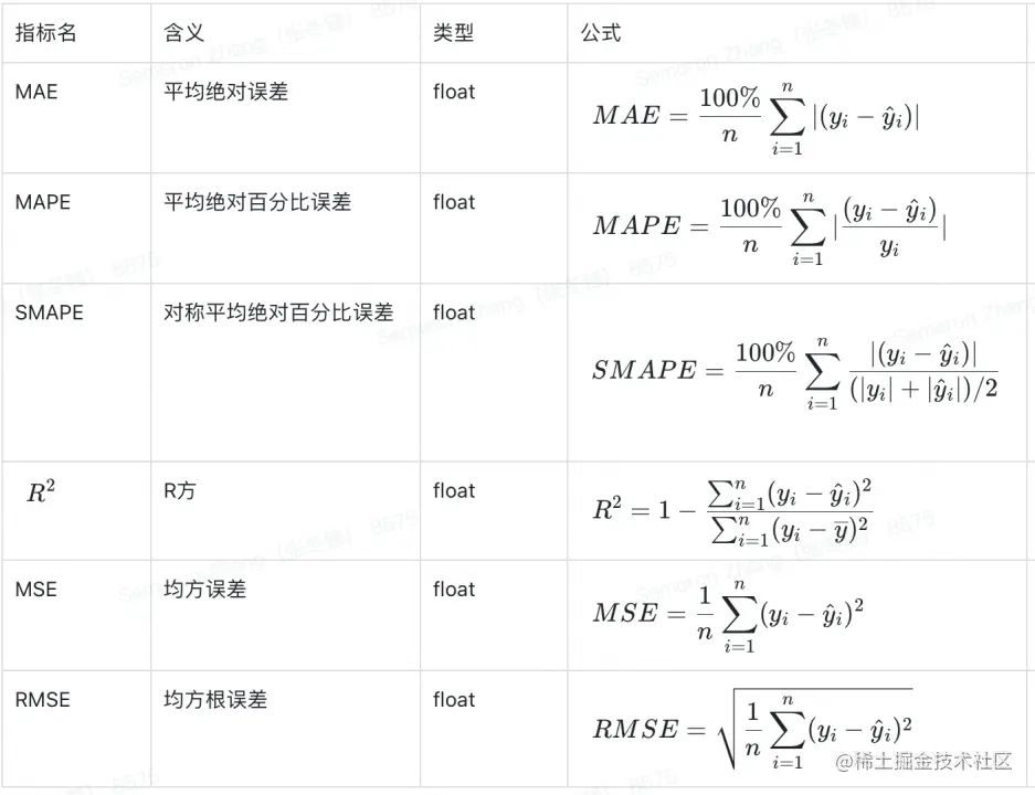 下图为时间序列模型常用评价指。在使用过程中,需根据实际的数据特征和指标特性进行选择。
