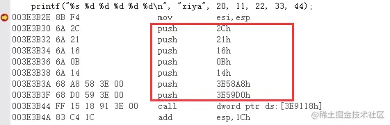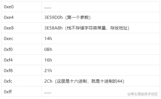 同时通过第一个参数,我们可以得到参数开始的内存地址0xe4,加上我们知道栈是按4字节为一个单位使用。了解指针的都知道,有这两个信息,我们就可以取到所有的参数。