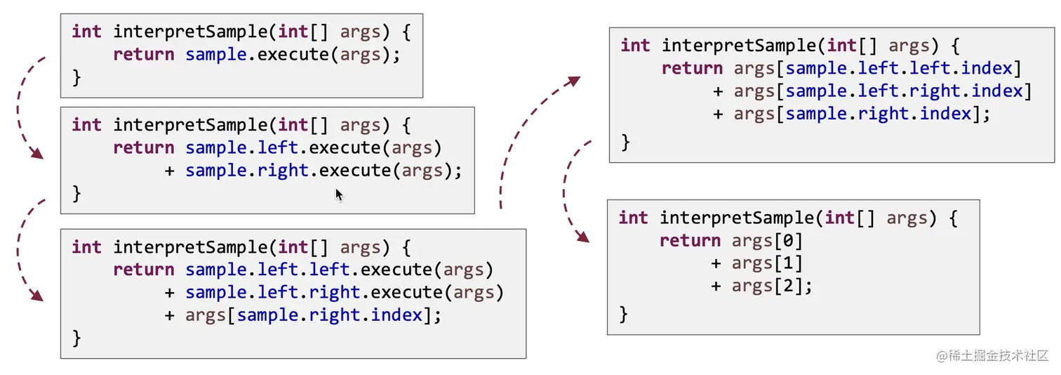 经过Partial Evaluator 的不断进行方法内联最终会变成下述代码: