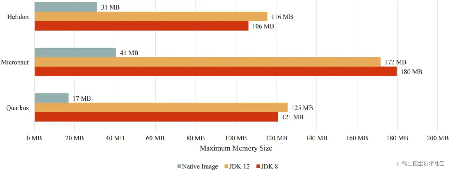 2)静态编译框架Substrate VM框架,为Java在云原生时代提供了与其他语言竞争的可能,大大的减少了Java应用占用内存,并且可以加快启动速度几十倍。