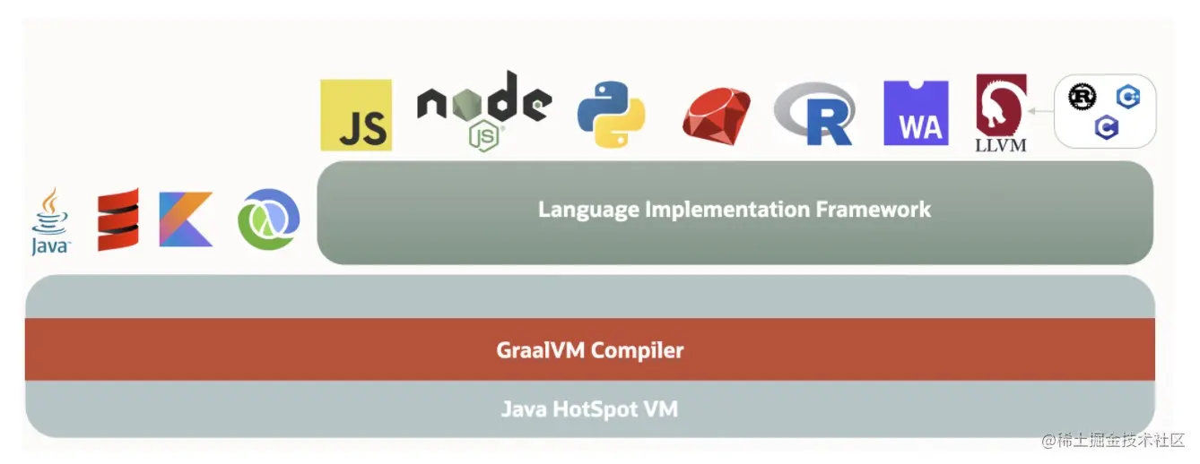 只需基于Truffle实现相关语言的词法分析器、语法分析器及针对语法分析所生成的抽象语法树(AST)的解释执行器,便可以运行在任何Java虚拟机上,享用JVM提供的各项运行时优化。