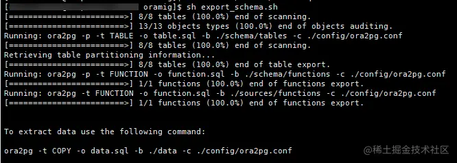 执行导出脚本,等待迁移完成。结束后在schema和source的子目录下生成对应类型的DDL文件,并在末尾给出导出表数据的命令。