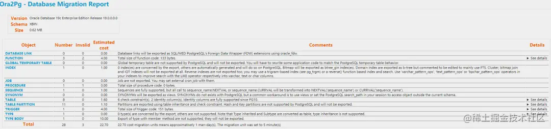 对于对象结构,Ora2Pg将其DDL语句导出到SQL文件中,对于表数据,则既可以以INSERT或COPY命令导出到文件,也支持直接导入到目标数据库,不需要产生中间SQL文件。