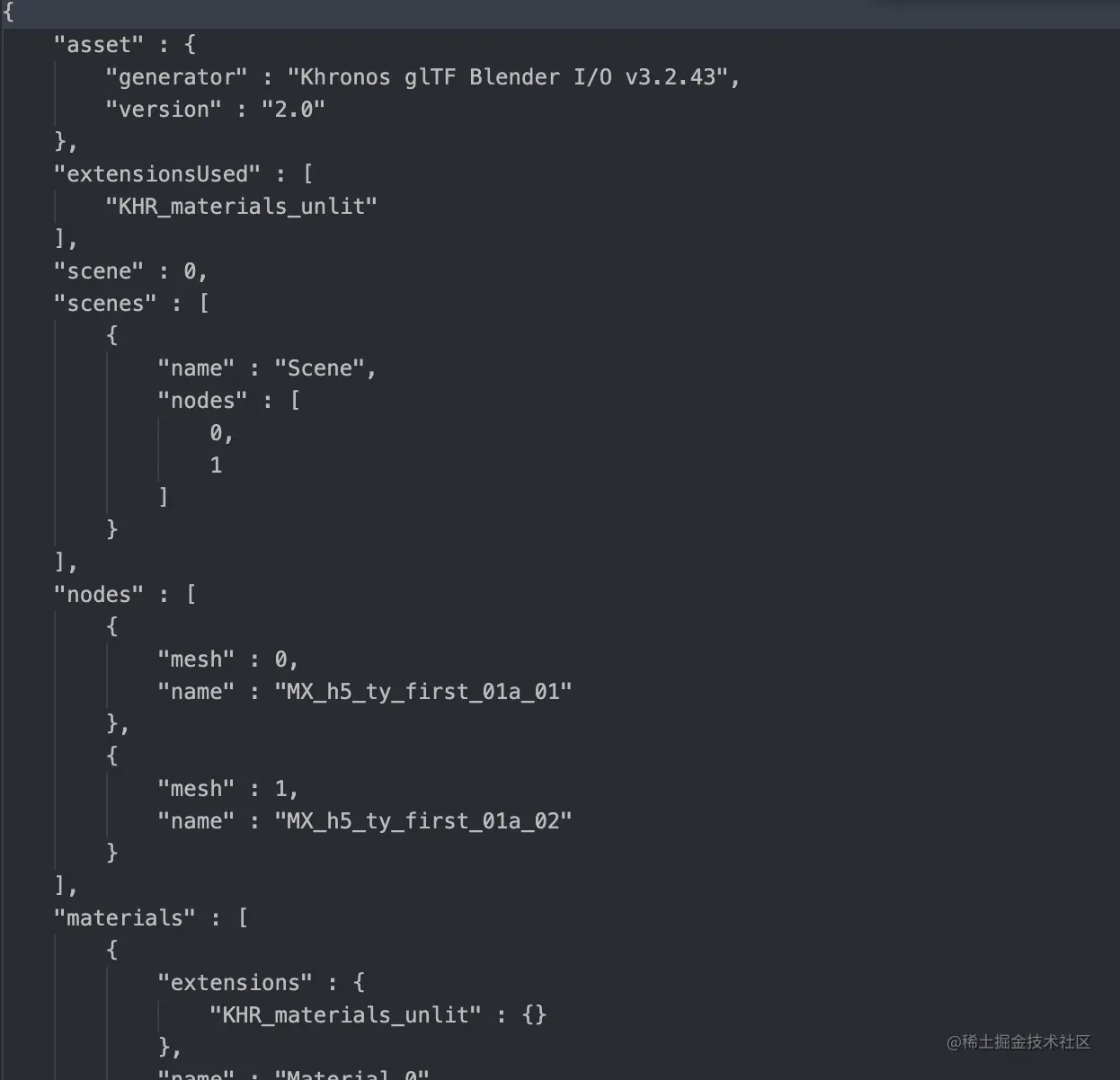 但实际上可行性差,因为模型软件不具备直接导出部分 json 数据的能力,模型导出的数据是二进制文件或者类似这样的 json: