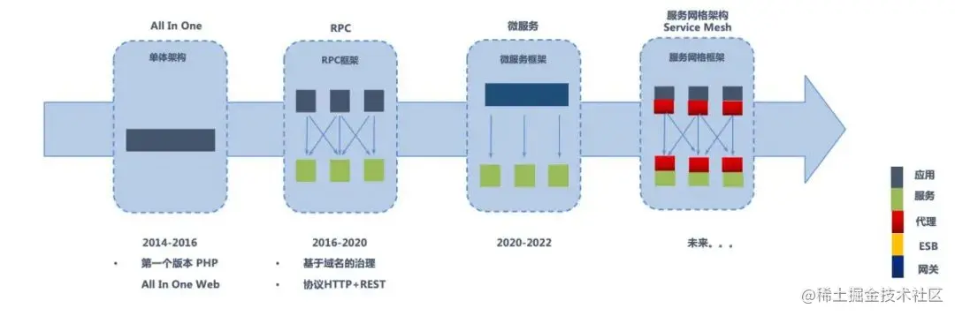 微服务阶段: 从2020年开始微服务化改造,一直到目前都还处于微服务阶段。