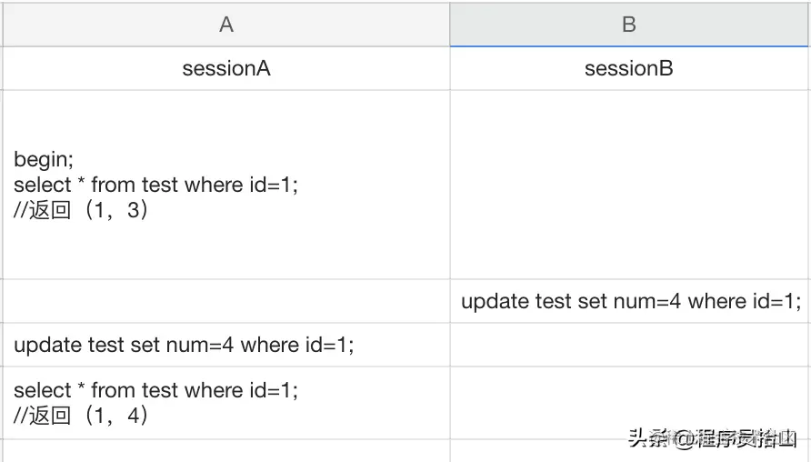 如果按照上面的步骤进行验证,你会发现sessionA的第二个select返回的结果会是(1,3)。