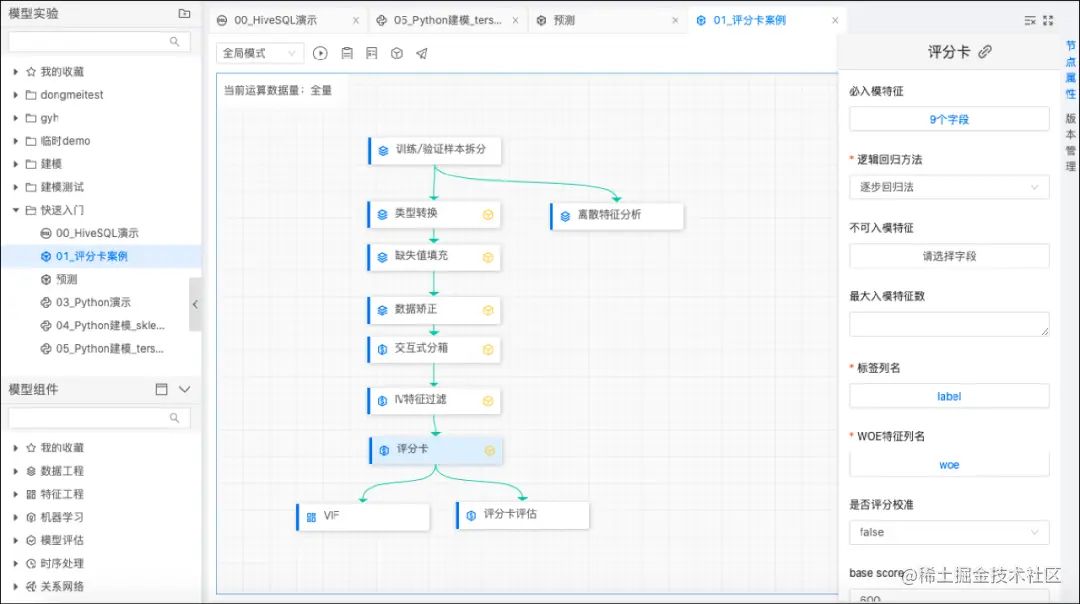 Xintell内置自研的一整套评分卡建模组件,适用于各种对可解释性要求高的建模场景。