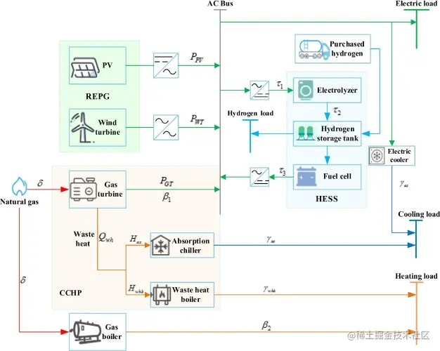 本文构建了天然气-风能-光伏氢气IES的配置优化模型。 IES主要由
