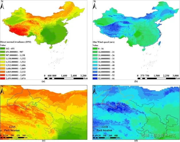 图5. 研究区域内风能和太阳能资源的详细分布。