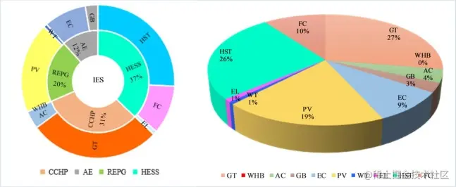 为了分析原优化方案下IES的主要成本和投资结构,本节详细分析了这10种主要设备的投资和采购情况,如图所示 Fig. 8.