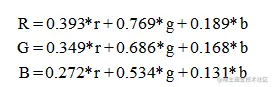 怀旧特效是将图像的RGB三个分量分别按照一定比例进行处理的结果,其怀旧公式如下所示: