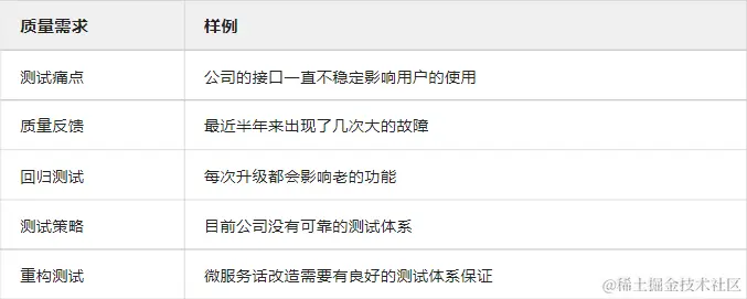 首先在做用例分析之前,可以通过追查公司一年来所有的故障原因,定位问题起因,或者通过与 CTO、产品经理、研发、运维、测试调查,得到质量痛点,还可以分析业务架构、流程调用,以及监控系统了解到业务的使用数据,从而得到质量需求。
