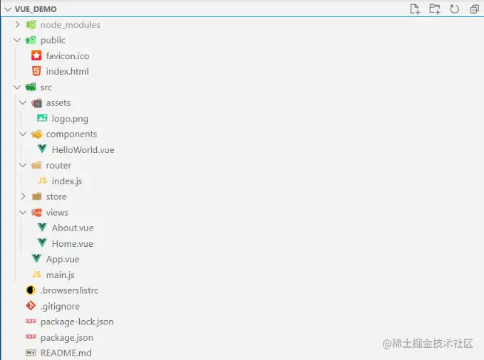 项目分为三大块:node_modules、public、src 以及其他的附属文件