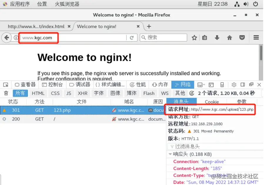 重启服务浏览器访问 www.kgc.com/upload/123.… 跳转到www.kgc.com页面。