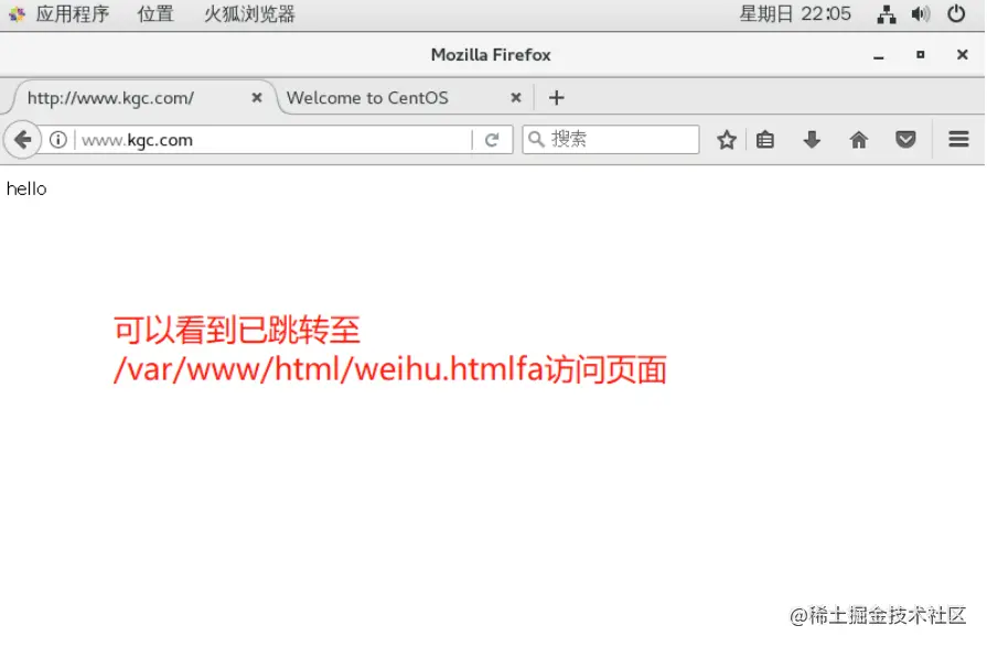 此时重启服务使用浏览器访问 www.kgc.com/100-200-100… 或 www.kgc.com/100-100-100… 跳转到www.kgc.com页面。