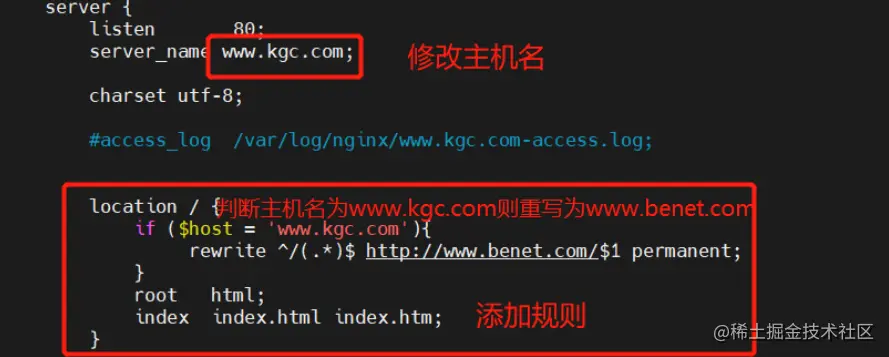 if ($host = 'www.kgc.com'){ #$host为rewrite全局变量,代表请求主机头字段或主机名