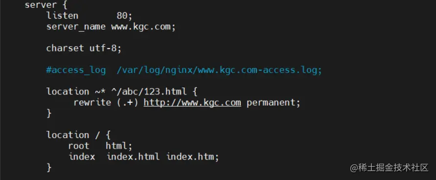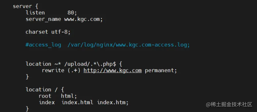 access_log /var/log/nginx/www.kgc.com-access.log; #日志修改
