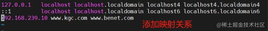 echo "192.168.80.10 www.kgc.com www.benet.com" >> /etc/hosts