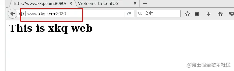 浏览器访问 www.xqk.com:8080 页面显示This is xkq web!