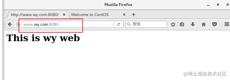 浏览器访问 www.wy.com:8080 页面显示This is wy web!