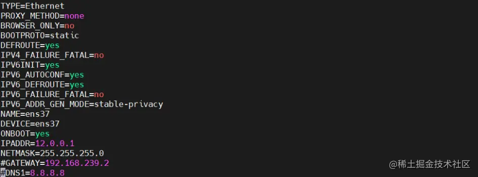 vim ifcfg-ens37 #删除uuid行修改以下几行NAME=ens37