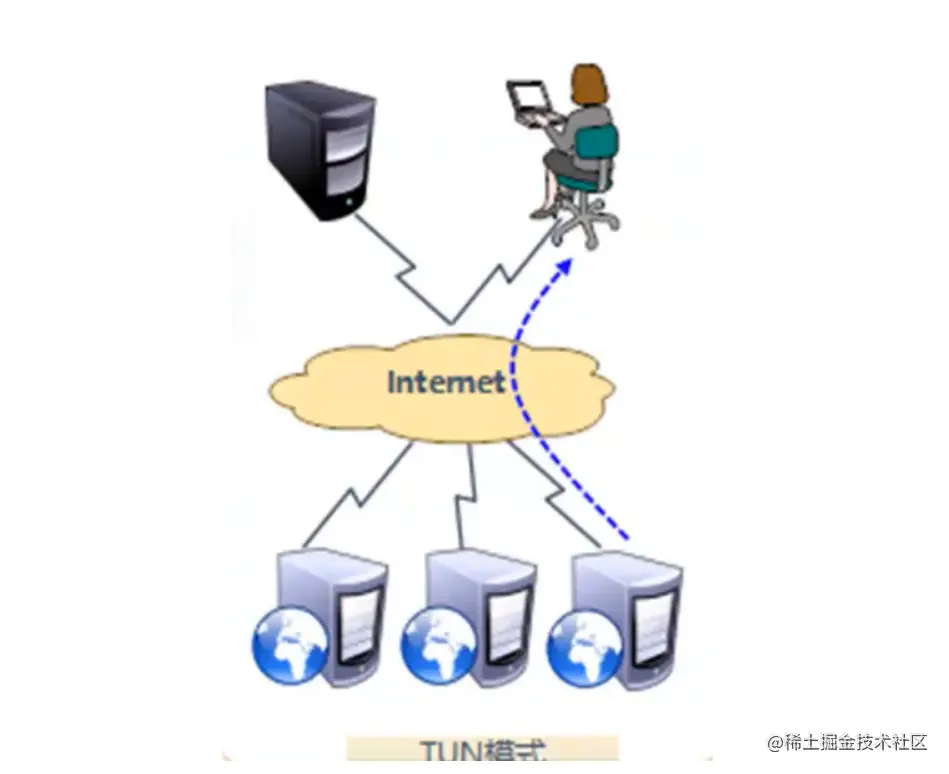 - 采用开放式的网络结构,负载调度器仅作为客户机的访问入口个节点通过internet连接直接回应客户机,而不经过负载调度器