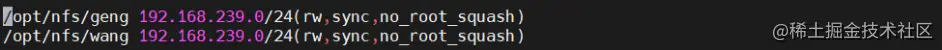 /opt/nfs/geng 192.168.239.0/24(rw,sync,no_root_squash)