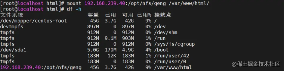 mount 192.168.239.40:/opt/nfs/geng /var/www/html/
