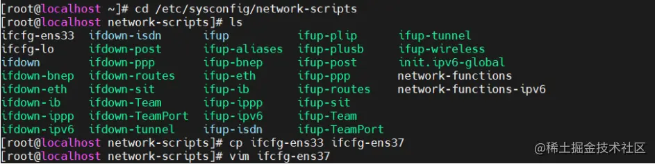 cp ifcfg-ens33 ifcfg-ens37 #复制已有的网卡配置文件进行修改