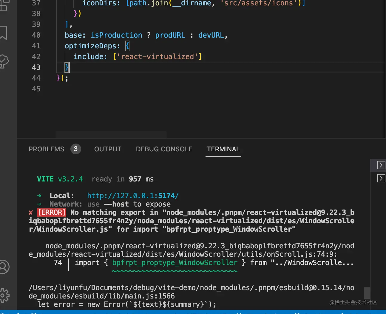 由于我们无法保证第三方包的代码质量,在某些情况下我们会遇到莫名的第三方库报错,例如react-virtualized库,这个库被许多组件库用到,但是他的ESM产物有明显问题,在Vite进行预构建的时候会直接抛出这个错误: