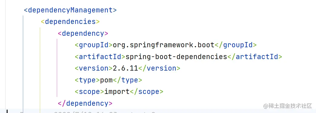 注意:如果我们要覆盖单个依赖项的属性,我们需要在添加 spring-boot-dependencies 之前添加这些依赖项。例如,要使用不同版本的slf4j库