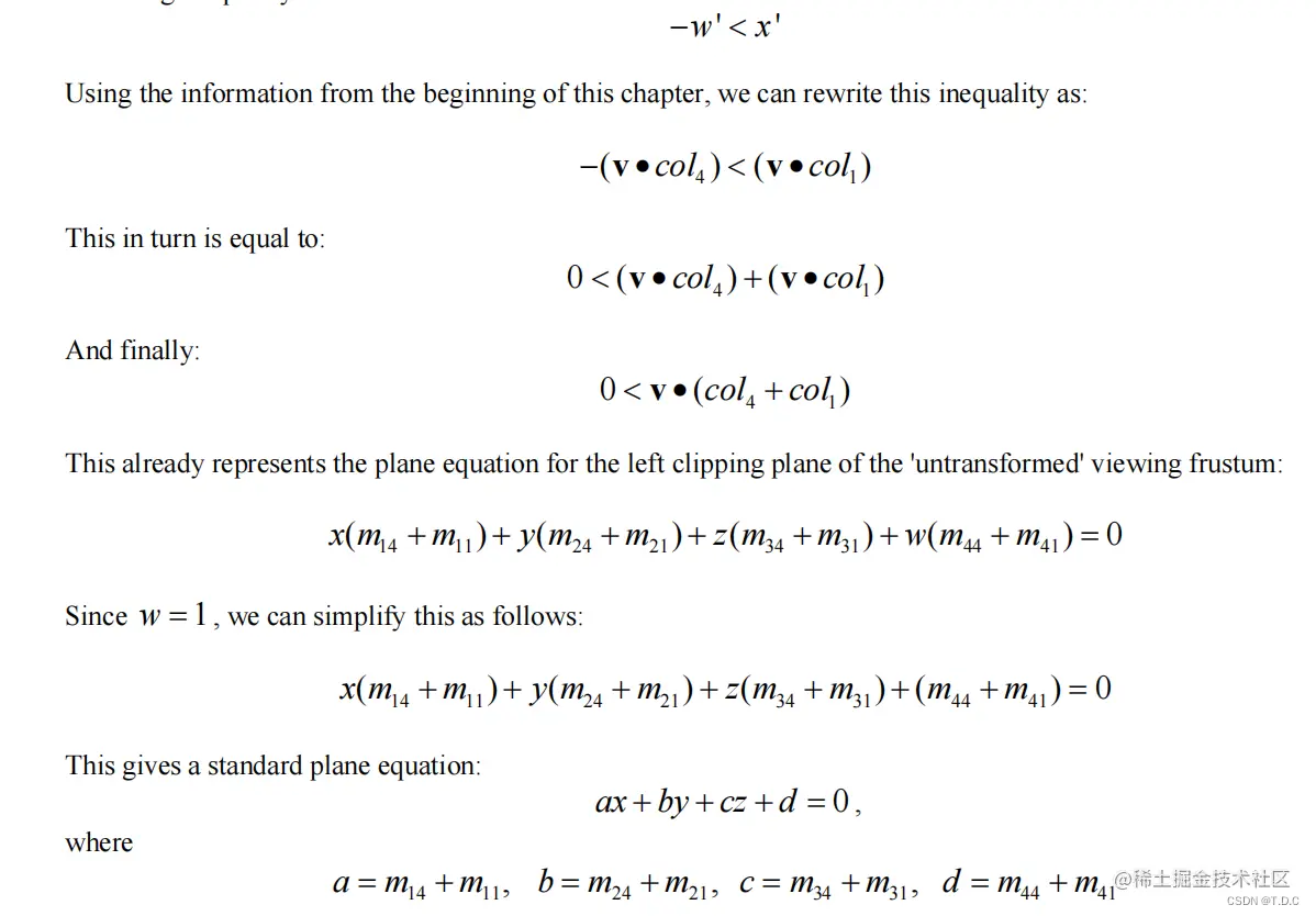 到这里相机的平面已经可以计算出来,下面说一下子视锥推导,以子视锥左平面为例。
