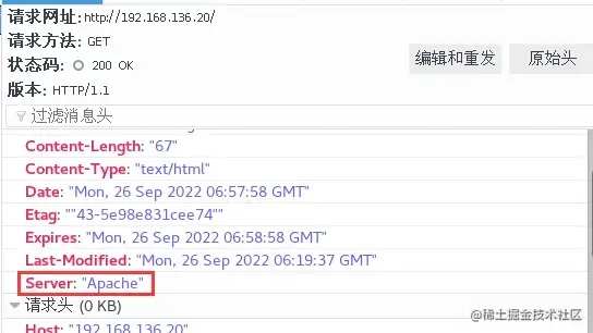 浏览器访问http://192.168.136.20,双击200消息查看Server项